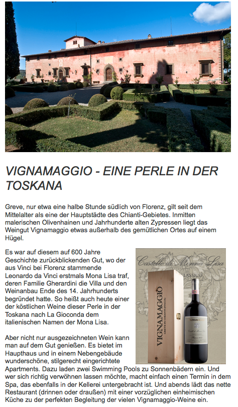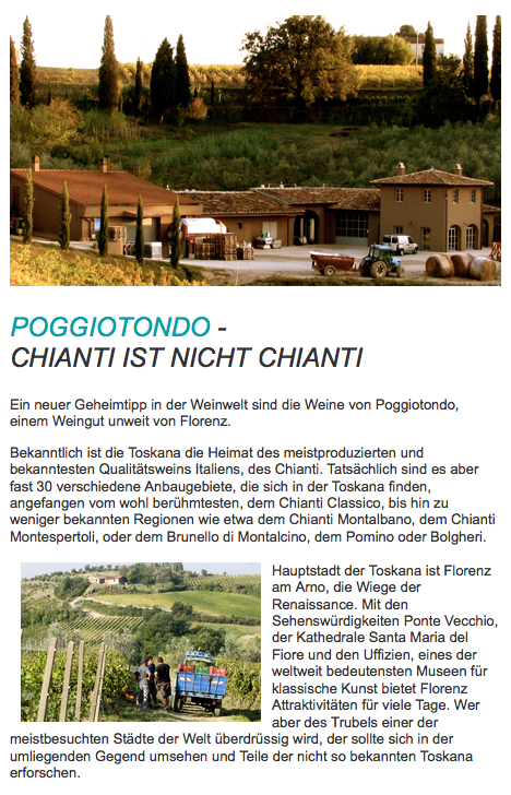 Michael Ullrich schreibt zudem regelmäßig über gute Weine und Anbaugebiete im STRIKES MAGAZINE www.strikes-magazine.de. Zum Artikel: VIGNAMAGGIO - EINE PERLE DER TOSKANA Zum Artikel: POGGIOTONDO - CHIANTI IST NICHT CHIANTI
